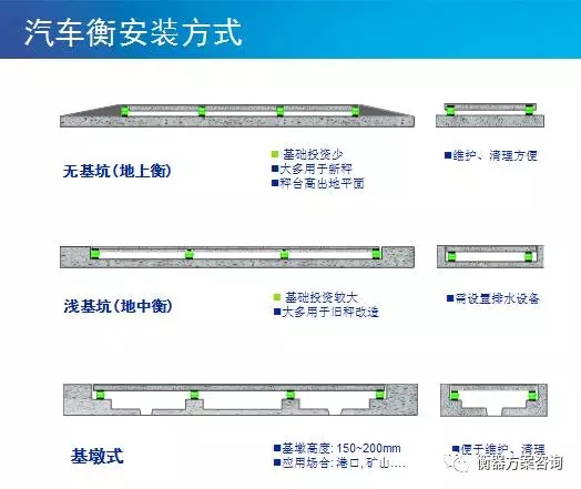 電子汽車衡的基坑形式一般有三種,分別是無基坑,淺基坑和基墩式。